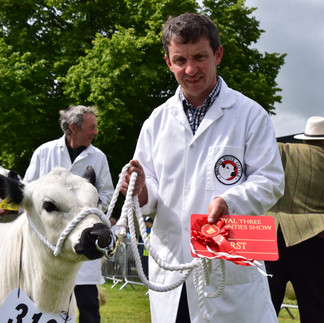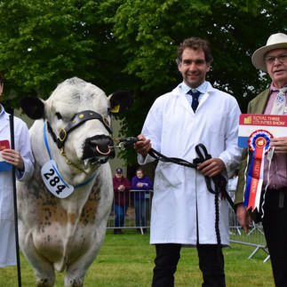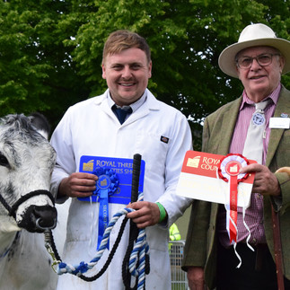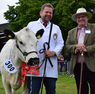 Judging the largest entry of British White cattle for any show in 2024 was professional stockman Keith Jempson, whose extensive list of breeds worked with over the years at one time included the Cleland British White and Hereford herds in Berkshire. Commenting on his final Championship line up, Mr Jempson remarked: "When I saw this bull [Castleton Ken] walk into the first class this morning, I thought that there would have to be a very good animal to come out and beat him today - and I have certainly had some great entries come forward - but I fell in love with him and have ended up taking him right through to stand as Breed Champion. My reserve is this wonderful cow [Tismans Peony], a nice-sized working female in just the right condition. Thank you to all of the British White exhibitors for bringing out some lovely cattle for me to judge, and to the Royal Three Counties Show, our ring steward Gerald Cox, and Breed Secretary Sarah Cook for organising the exhibits and prizes."